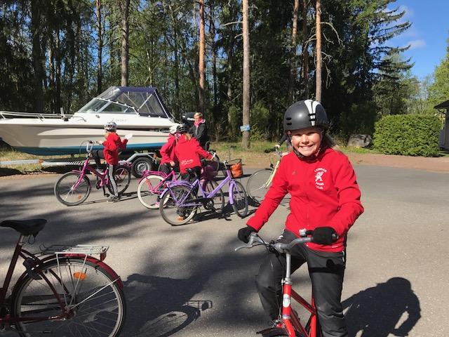 Helatorstain pyörätreeni 25.5., rastilla leimauksessa.